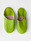 Moroccan Leather Babouche Basic Slippers in Lime, a contemporary pair of bespoke slippers in vibrant green leather. Handmade using...