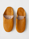 Moroccan Babouche Basic Slippers in Mustard, a vibrant pair of bespoke leather slippers in mustard yellow leather. Handmade using the...