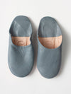 Moroccan Leather Babouche Basic Slippers in Pearl Grey, a contemporary pair of bespoke slippers in soft pale grey leather....