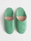 Moroccan Leather Babouche Basic Slippers in Spearmint, a contemporary pair of bespoke slippers in spearmint green leather. Handmade using...