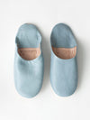 Moroccan Leather Babouche Basic Slippers in Indigo, a contemporary pair of bespoke slippers in soft indigo blue leather....