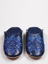 Moroccan Leather Babouche Sequin Slippers in Indigo, a pair of bespoke slippers in indigo blue leather. Handmade using the traditional techniques...