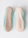 Moroccan Leather Babouche Sequin Slippers in Duck Egg, a pair of pastel bespoke slippers in duck blue leather. Handmade using...