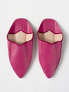 Moroccan Pointed Babouche Slippers in Fuchsia, a contemporary pair of pointed slippers in vibrant pink leather. Handmade using the traditional techniques of...