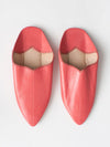 Moroccan Pointed Babouche Slippers in Coral, a contemporary pair of pointed slippers in coral pink leather. Handmade using the traditional techniques...