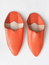 Moroccan Pointed Babouche Slippers in Orange, a contemporary pair of pointed slippers in bright orange leather. Handmade using the traditional techniques of our...