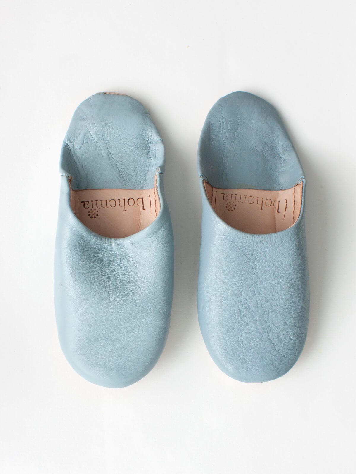 Moroccan Leather Babouche Basic Slippers in Pearl Grey, a contemporary pair of bespoke slippers in soft pale grey leather. Handmade using the traditional techniques of our skilled leather artisans, Hamid and his team have been making slippers for Bohemia for more than 10 years in their Moroccan workshop. Our best selling grey leather slippers are the ultimate home accessory and the perfect gift, with free gift wrapping available at the checkout.
