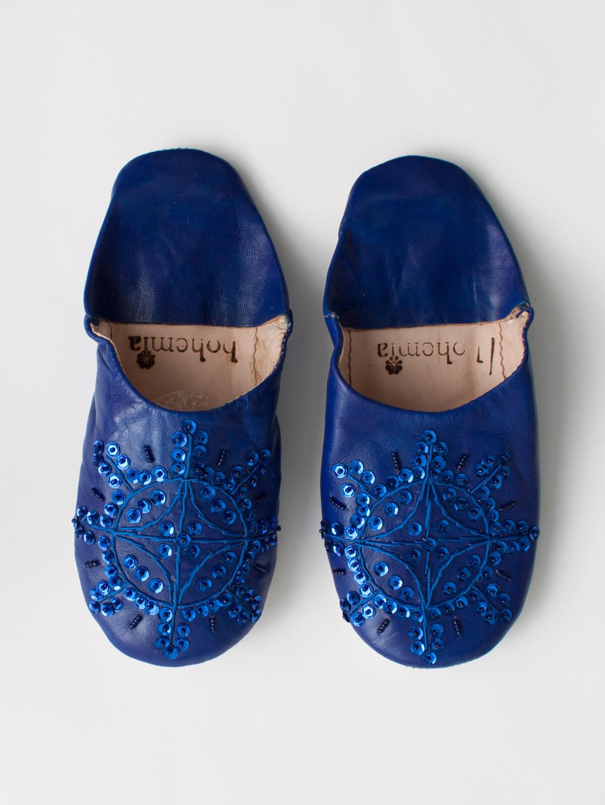Moroccan Babouche Sequin Slippers, Cobalt - Bohemia Design