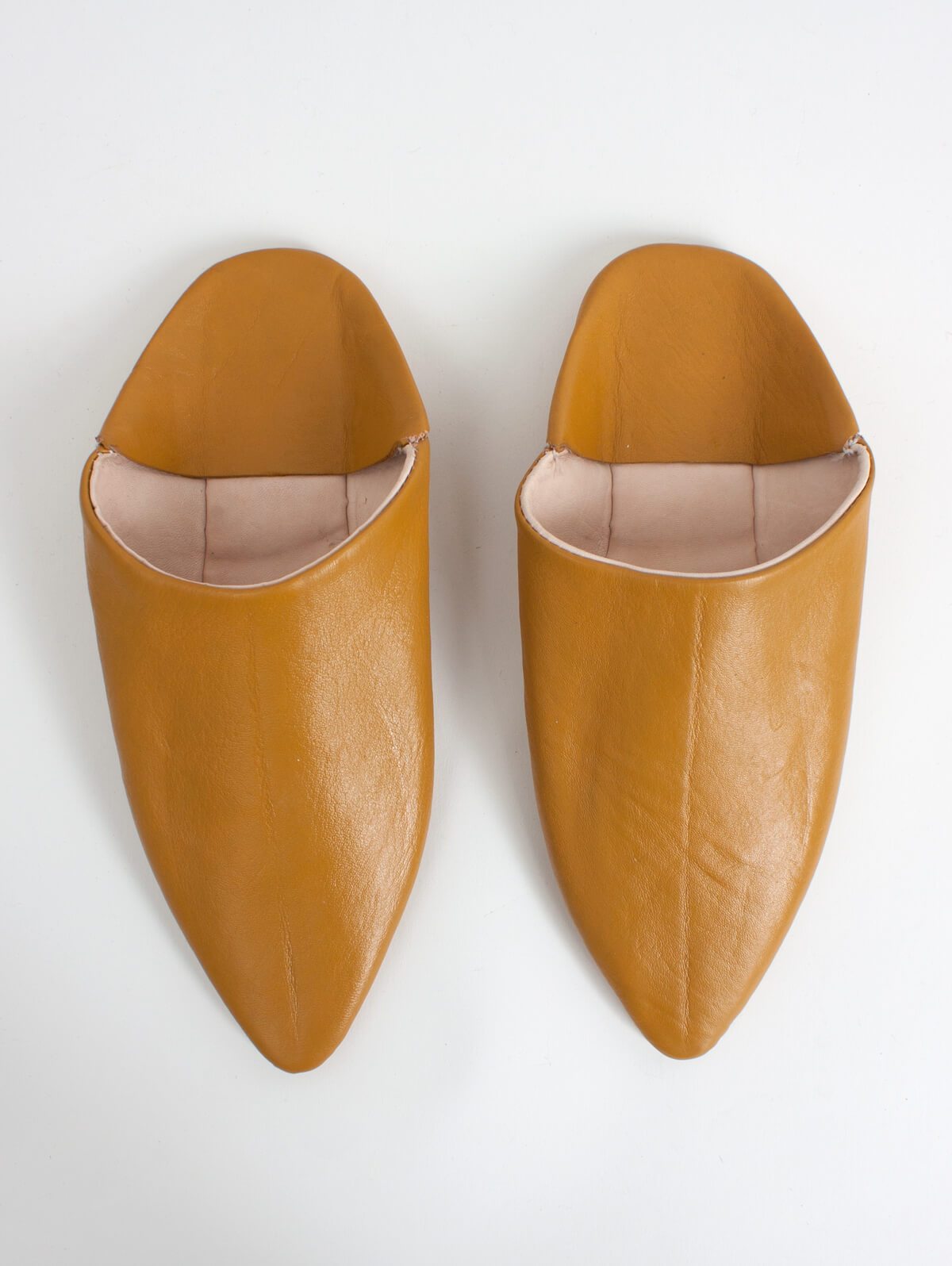 Moroccan Classic Pointed Babouche Slippers, Mustard