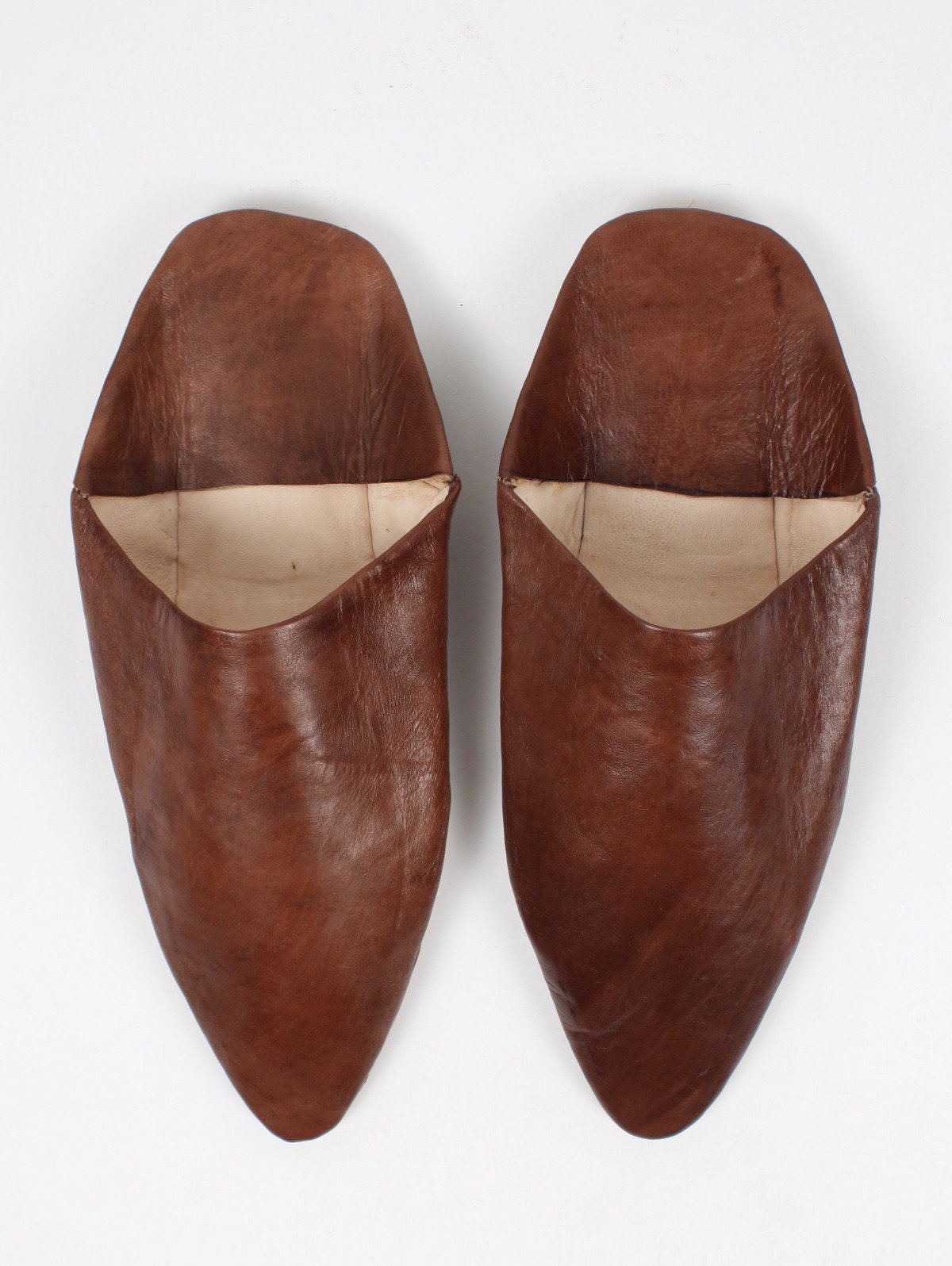 Moroccan Mens Pointed Babouche Slippers, Chocolate - Bohemia Design