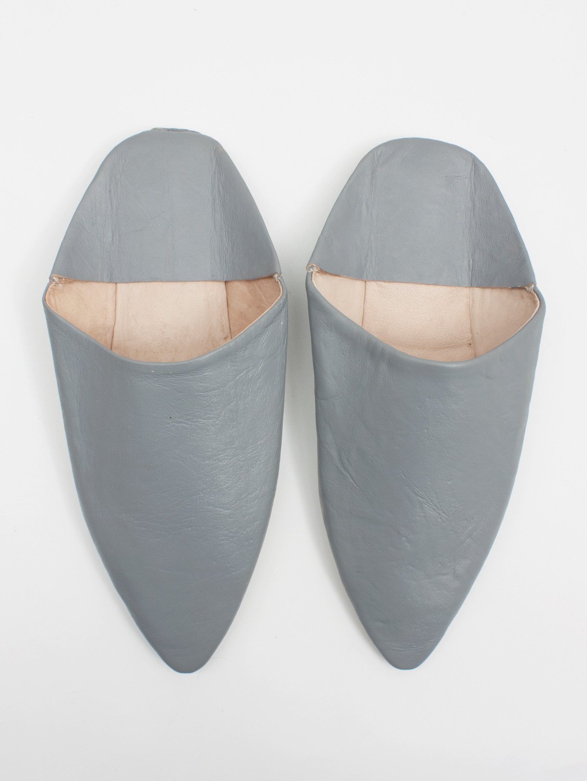 Moroccan Mens Pointed Babouche Slippers, Grey
