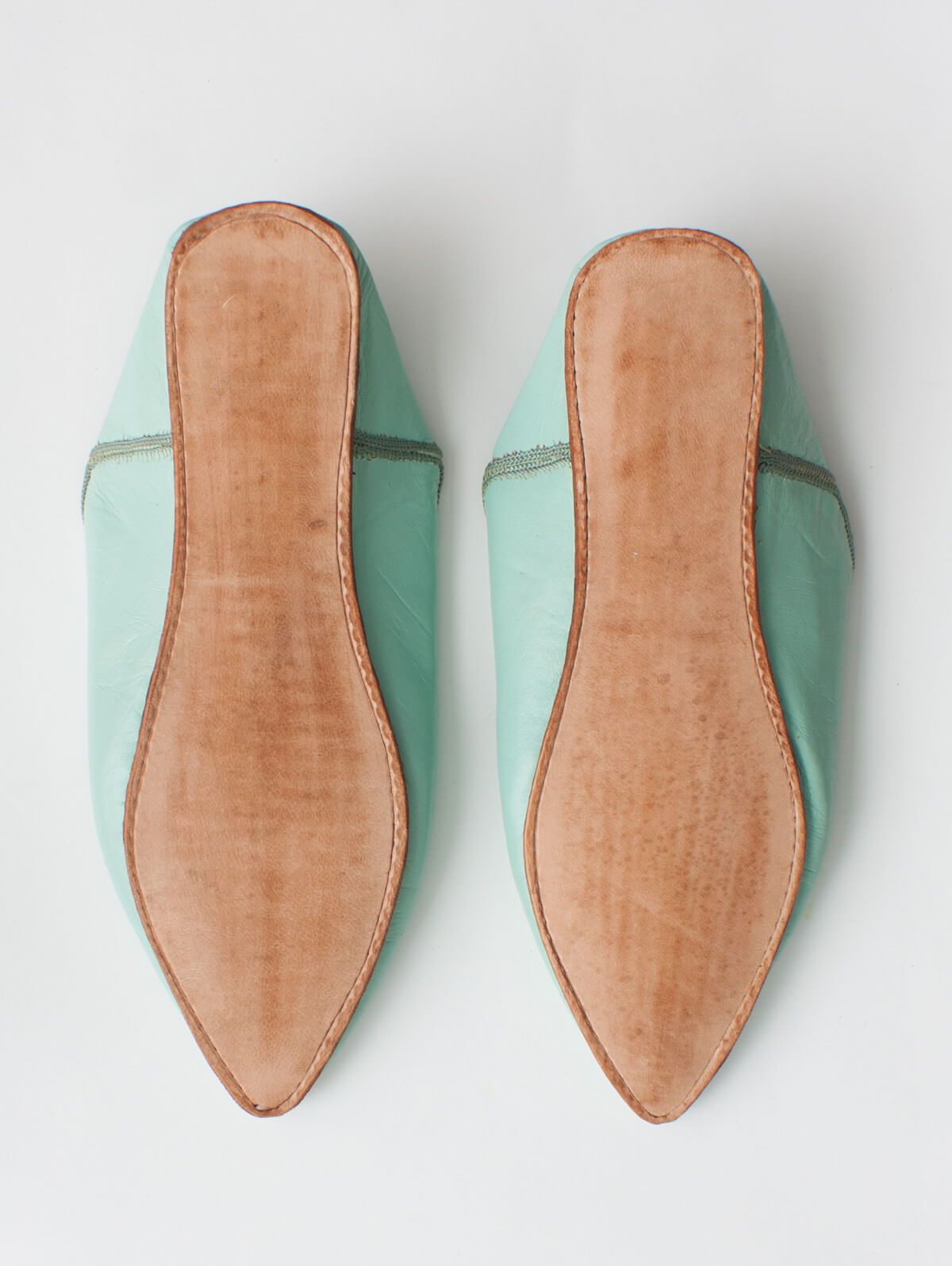 Moroccan Plain Pointed Babouche Slippers, Sage