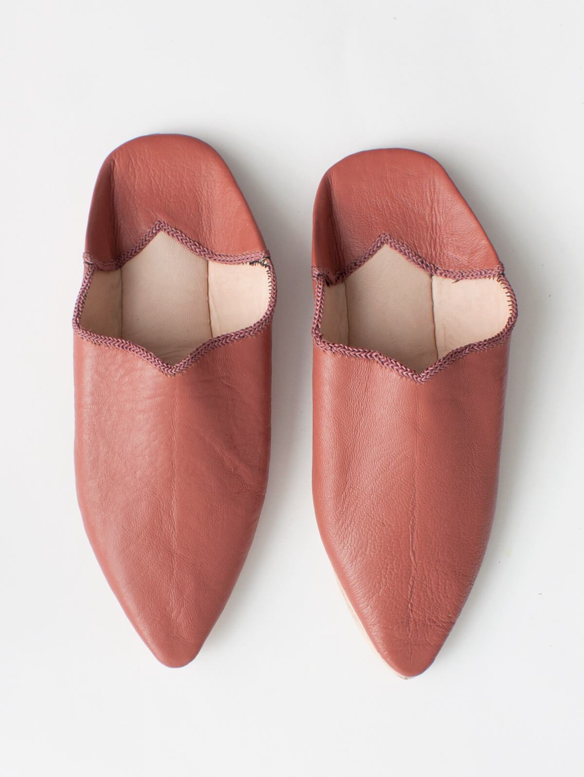 Moroccan Plain Pointed Babouche Slippers, Terracotta