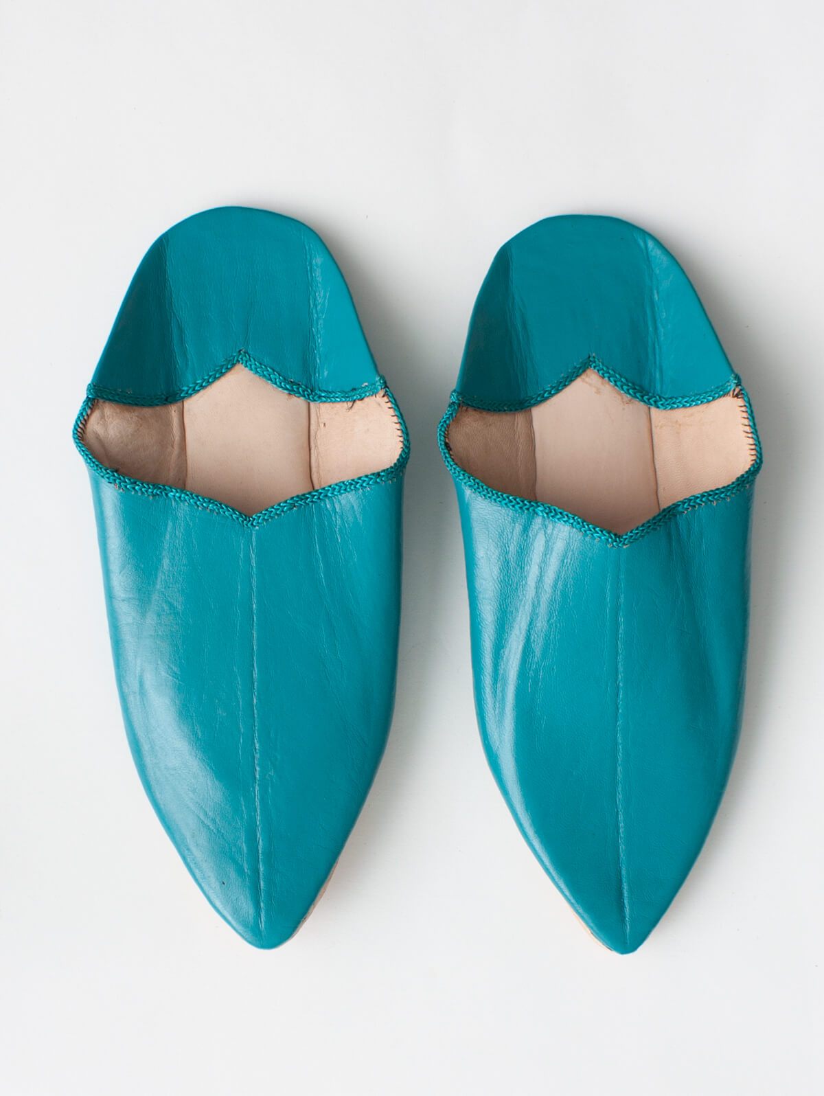 Moroccan Plain Pointed Babouche Slippers, Teal